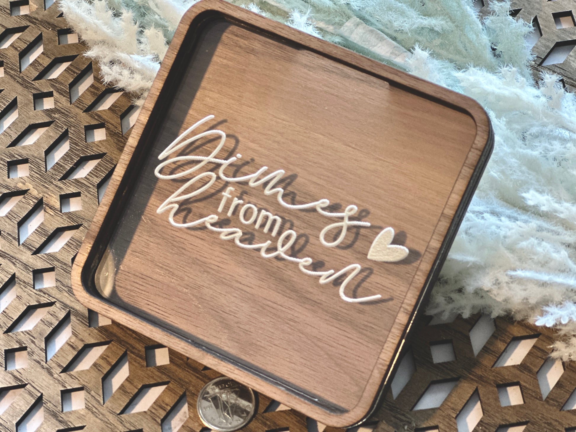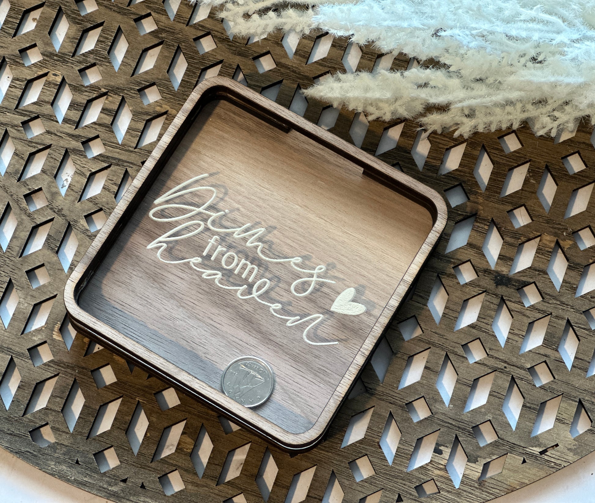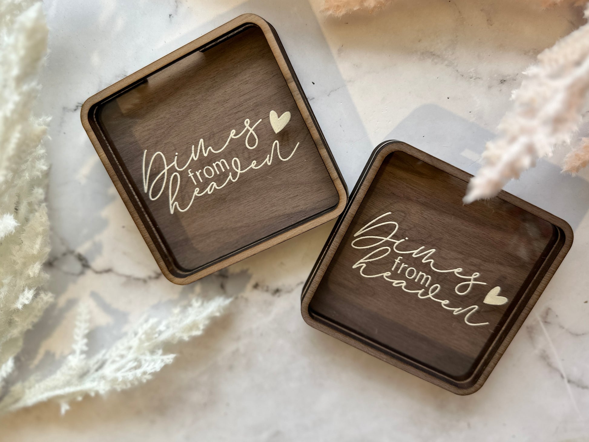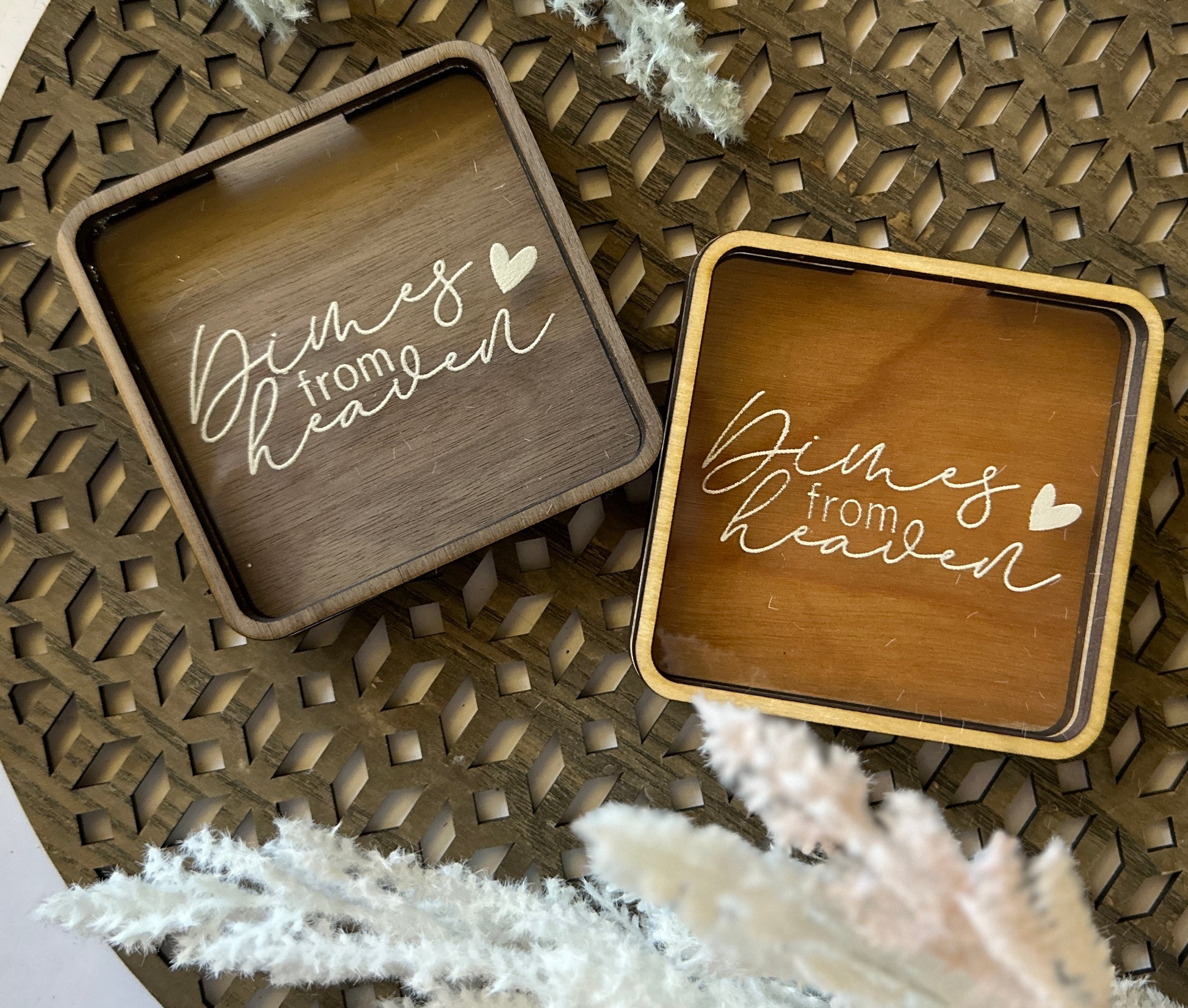 This 4”x4” bank made from walnut and clear acrylic is an amazing place to pop your reminders from loved ones.