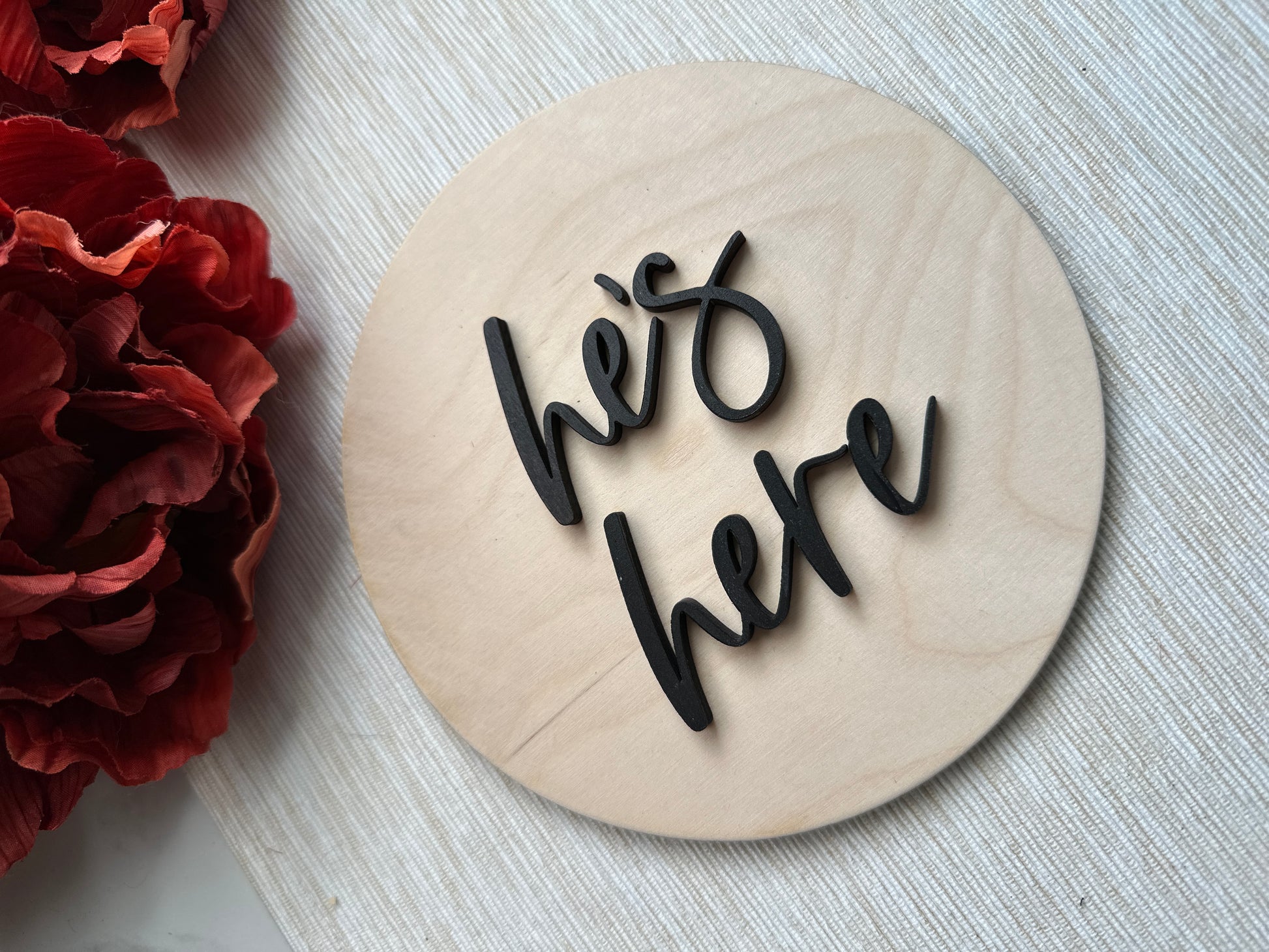 Infant gender announcement made of 1/4” maple ply. Approximately 5” across. The edges are sanded smooth to keep baby safe.