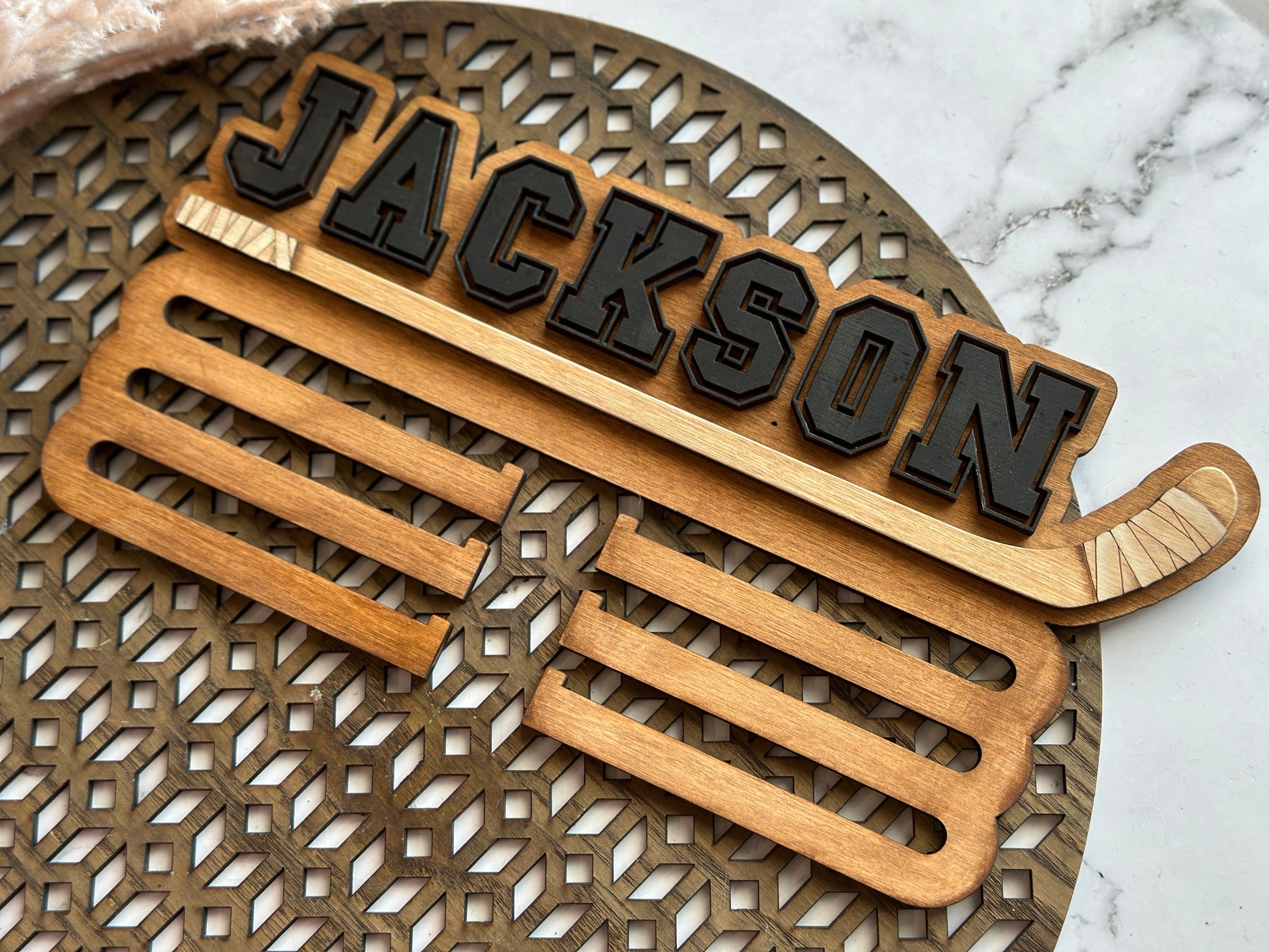 This design can be easily altered for other sports and more hangers, just reach out to begin designing :)