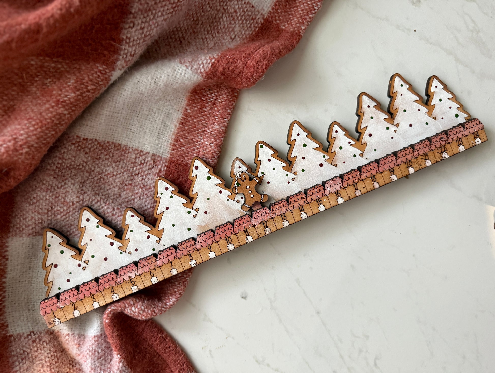 This piece is hand painted to give it a unique appearance. It is versatile and the character can be moved from slot to slot either towards Christmas day, or from it to show the days left.